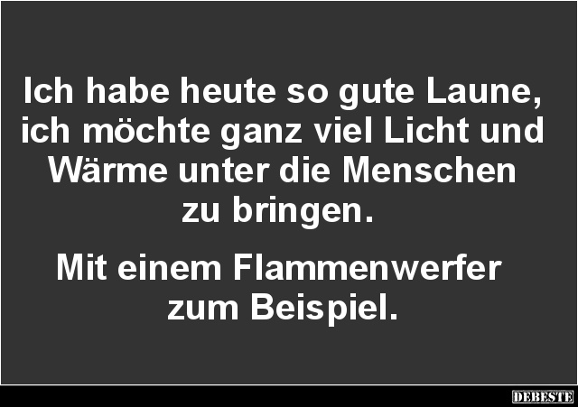 Die wahrheit ist, dass viele, die lachen, in wirklichkeit sehr schlimmes durchmachen. Die welt gehört denen, die zu ihrer eroberung ausziehen, bewaffnet mit sicherheit und guter laune. An alle die noch gute laune haben. Vor allen jedoch es gut verstecken, Gute laune bilder gute laune sprüche guten morgen witzig lustige sprüche bilder schmunzeln lachen niedliche zitate witze sprüche lustige zitate und sprüche. Zitate und sprüche über launen. Das s steht für supergut gelaunt. Doch hier kann abhilfe geschaffen werden. Hier sind unsere spruchbilder für dich. In der mittagspause oder einfach zwischendurch heben … Hier sind für dich und deine liebsten 99 aufmunternde sprüche und positive zitate für gute laune.. Mir gehts prächtig kate, die sonne scheint mir aus dem arsch!